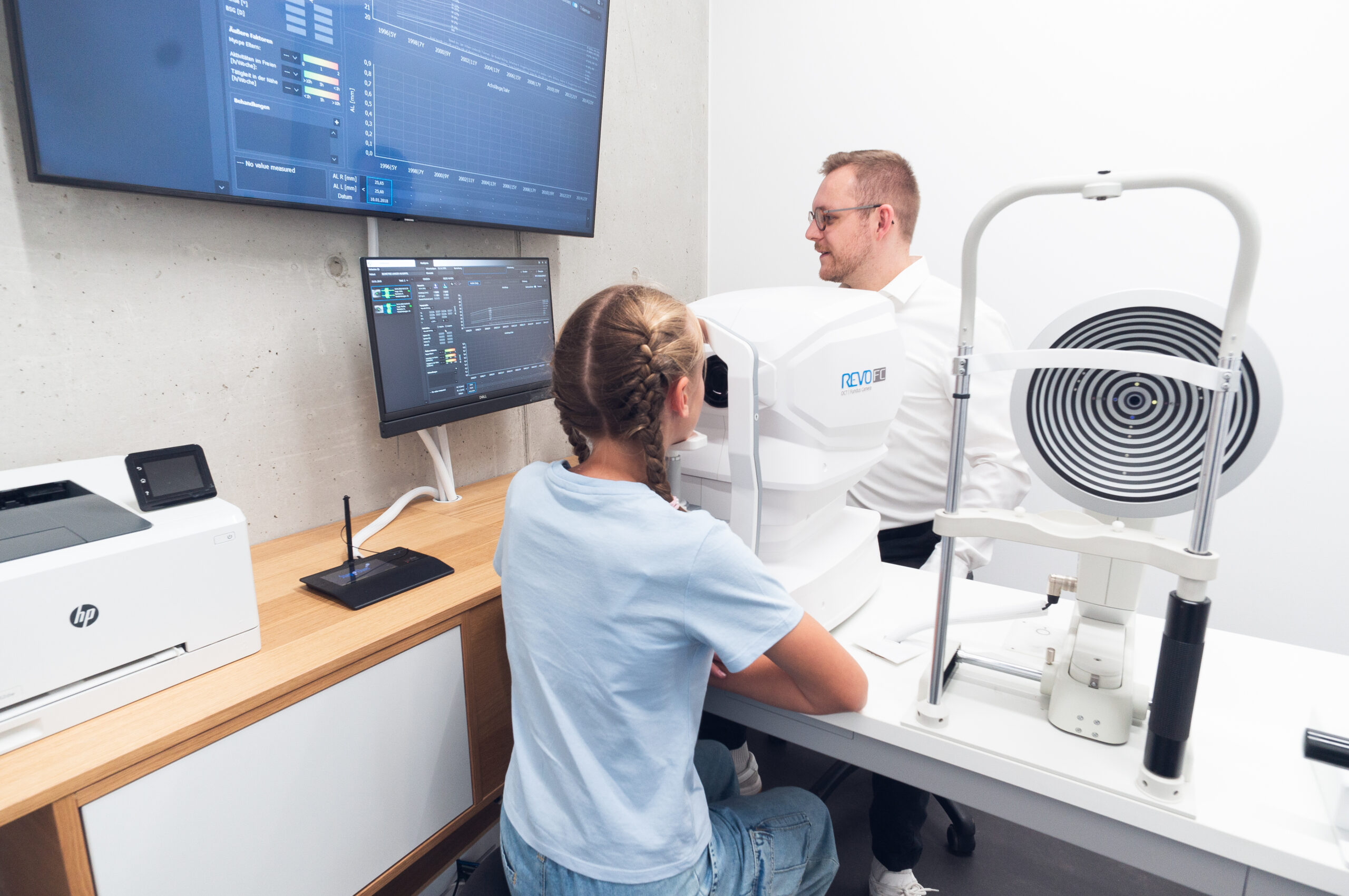 Vorsorge speziell für Kinderaugen: Mit modernsten Geräten überprüfen wir das visuelle System und die Entwicklung des Auges. Wie ist die Sehstärke, wie das räumliche Sehen? Wichtig auch: Eine Bewertung der Baulänge des Auges. So können wir eine Prognose zur Kurzsichtigkeit (Myopie) erstellen und Empfehlungen für die Prävention geben.